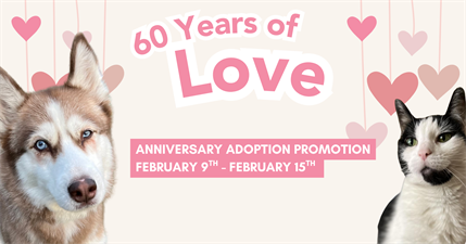 On February 14, 2026, we mark 60 years of love, compassion, and lifesaving, and we’re honoring the occasion with our 60 Years of Love Adoption Promotion.