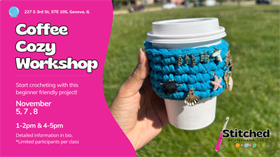 Come join us for a fun and cozy time learning how to crochet your very own coffee cozy! This in-person event will take place at 227 S 3rd St suite 105. Whether you're a beginner or an experienced crocheter, this class is perfect for all levels. Grab your favorite yarn and hook, and get ready to create a cute and practical accessory for your daily coffee fix. Don't miss out on this opportunity to learn a new skill and meet fellow craft enthusiasts. See you there!